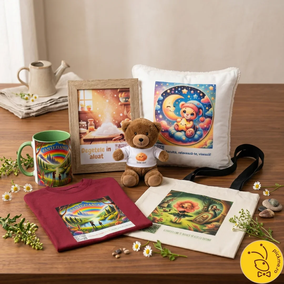 PickMe este un magazin de cadouri personalizate care îmbină emoția cu educația. Produsele noastre integrează povești audio, mesaje și experiențe interactive prin coduri QR, oferind copiilor și familiilor momente de conectare, învățare și bucurie. Prin scanarea unui cod QR, cei dragi descoperă povești, mesaje personalizate, urări sau videoclipuri — de la „La mulți ani" spus din suflet, până la momente importante surprinse în imagini. Fondat în 2018 de Andreea Cornea, PickMe s-a născut dintr-o dorință simplă: să transforme un dar într-o experiență care apropie oamenii și rămâne în suflet.